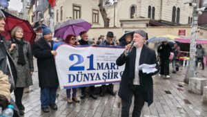 İSTANBUL – Türkiye Yazarlar Sendikası (TYS), 21 Mart Dünya Şiir Günü’nü Kadıköy Surp Takavor Kilisesi Meydanı’nda düzenlenen anlamlı bir etkinlikle kutladı. Soğuk hava ve yağmura rağmen TYS üyeleri, edebiyatseverler ve İstanbul halkının yoğun katılımıyla gerçekleşen buluşmada, şiirin barış ve kardeşlik dili bir kez daha sokaklara taşındı.